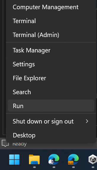 - Right click on the windows start button and select the "run" option.