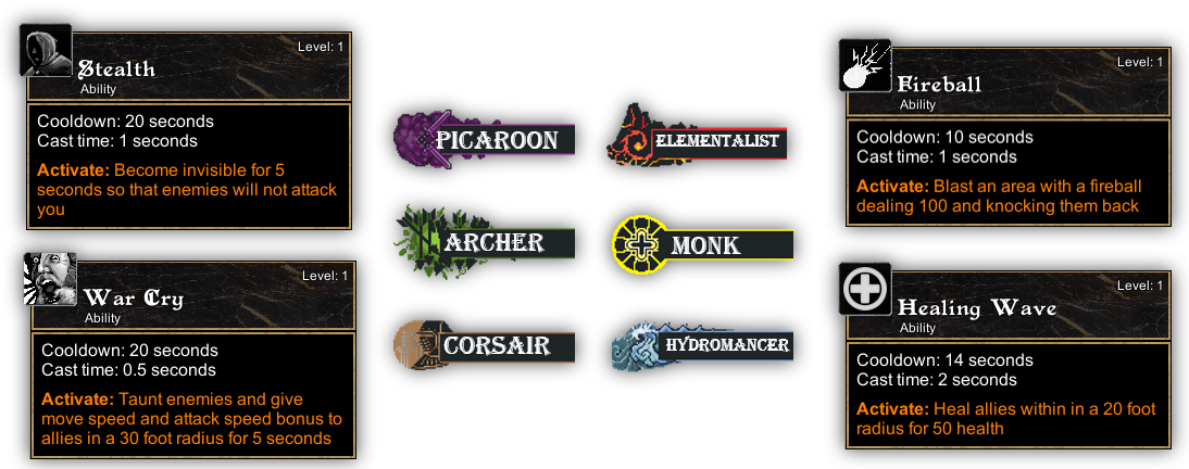 Different classes with some example abilities