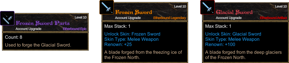 | Frozen Weapon | +25 | 100 Winter Essence, 100 Heroic Fragments, 50 Legendary Infusions, 1M Gold |