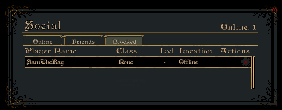 From the Social Window you can add players a friends or as blocked. If a player is your friend then you will get an in-game notification when they join your server. If a player is blocked, then you will no longer be able to see each other's chats or join each other's quests.